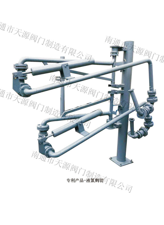 液氯免維護(hù)裝卸臂由旋轉(zhuǎn)接頭與口徑DN50材質(zhì)為16Mn的鋼管及彎頭焊接起來,用于裝卸液氯儲罐與液氯槽車之間液氯的設(shè)備。 焊接起來的管路,分液相管、氣相管,2根管路兩段焊接DN50法蘭,2根液相氣相管,一頭固定在立柱上,與灌裝平臺上的液相、氣相管法蘭對接,另一頭懸空在灌裝平臺上,槽車灌裝平臺上,槽車灌裝時,與槽車上對應(yīng)的法蘭片對接。