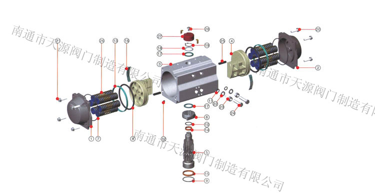 氣動(dòng)齒輪齒條式執(zhí)行機(jī)構(gòu)(角行程)解剖圖